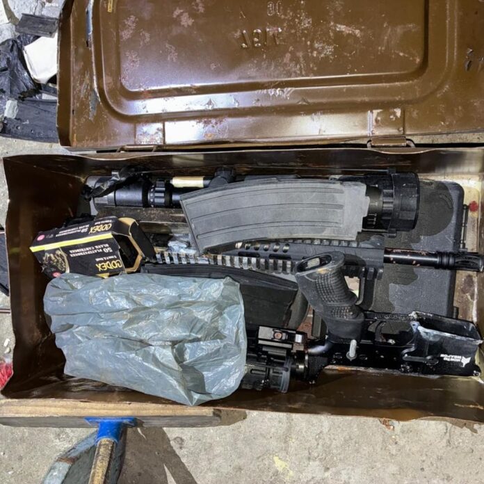 Police also found a nine millimetre imitation firearm, a Beretta Z88 nine millimetre pistol, parts of an AR15 pistol or rifle, a scope and a magnifier.