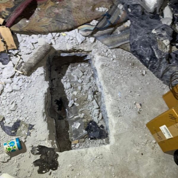 In one of the rooms, an officer noticed concrete under a carpet with plastic sticking out.