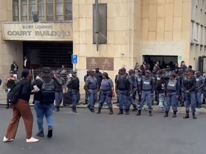 - Heavy police teams are closely watching court buildings in East London and Polokwane to make sure supporters stay peaceful today.