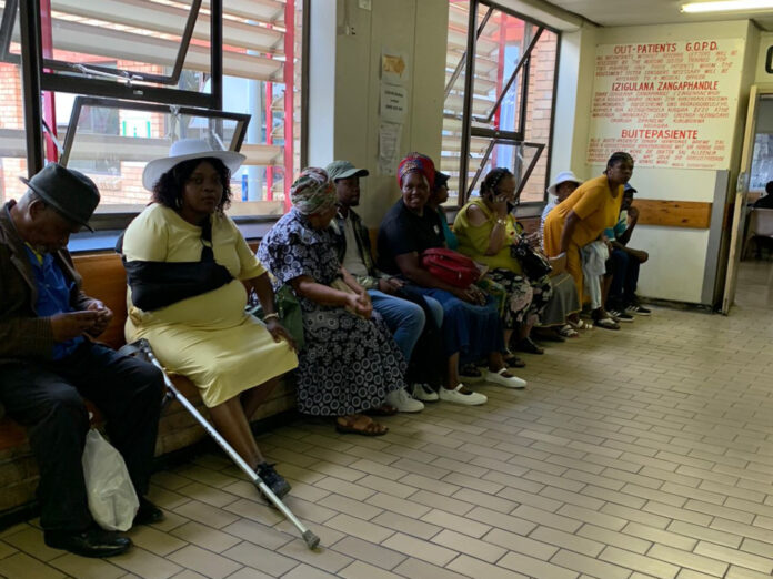 Pictured above: Patients in a queue at Grey Hospital in Qonce.