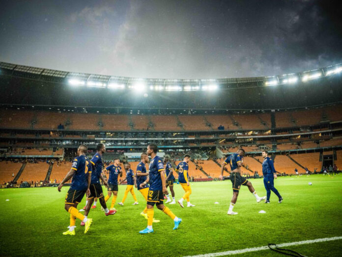 Pictured above: Kaizer Chiefs warming up at the FNB Stadium.