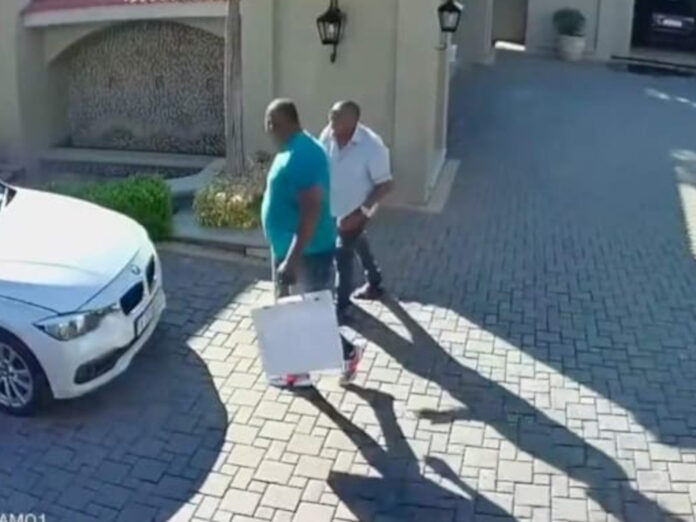 He presented CCTV footage from 27 November last year showing Sergeant F.E. Nkosi arriving at the Sandhurst home of alleged drug and smuggling boss Katiso “KT” Molefe in a white BMW state vehicle.