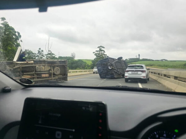 Two vehicles overturned N2 Northbound on the bridge before Tinley Manor Interchange towards Umvoti Toll Plaza/Ultra City. Emergency services are on the scene. Significant delays are expected. Approach with caution.