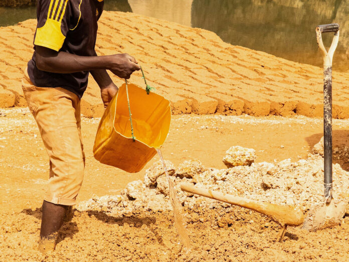 Pictured above: A man making mud bricks.