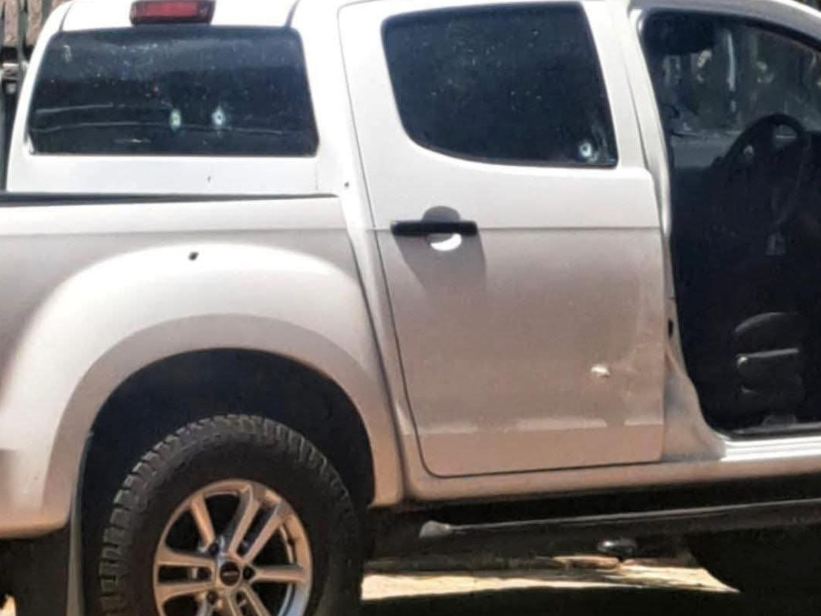 “Klapper Street, Van Dyk Park. Come and assist me here. They shot my bakkie up. I don’t know if it’s a hit or something. I managed to get out,” he says.