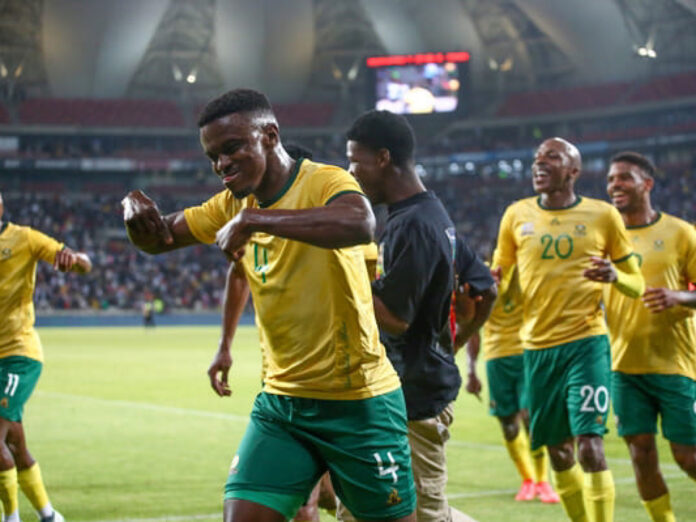 Bathusi Aubaas scored his first goal in national team colours when he made it 3-0 in the 37th minute before Lyle Foster increased the hosts’ lead seven minutes into the second half.