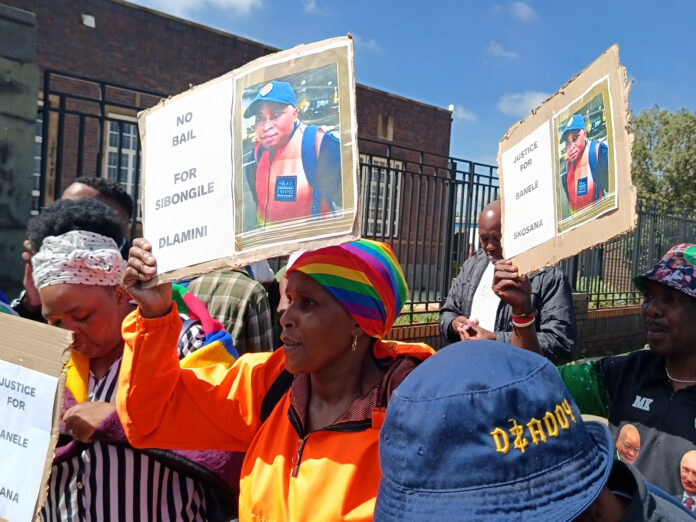 Outside court, protest groups held up placards asking Magistrate Khensani Moila to keep the alleged killers in jail.