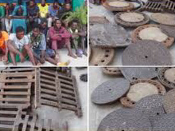 The police said, “Investigations have revealed that these individuals operate as part of a larger network, selling stolen manhole covers to scrap dealers.