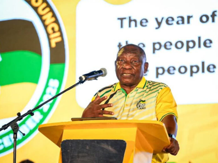 Pictured above: President Cyril Ramaphosa addresses the ANC National General Council.
