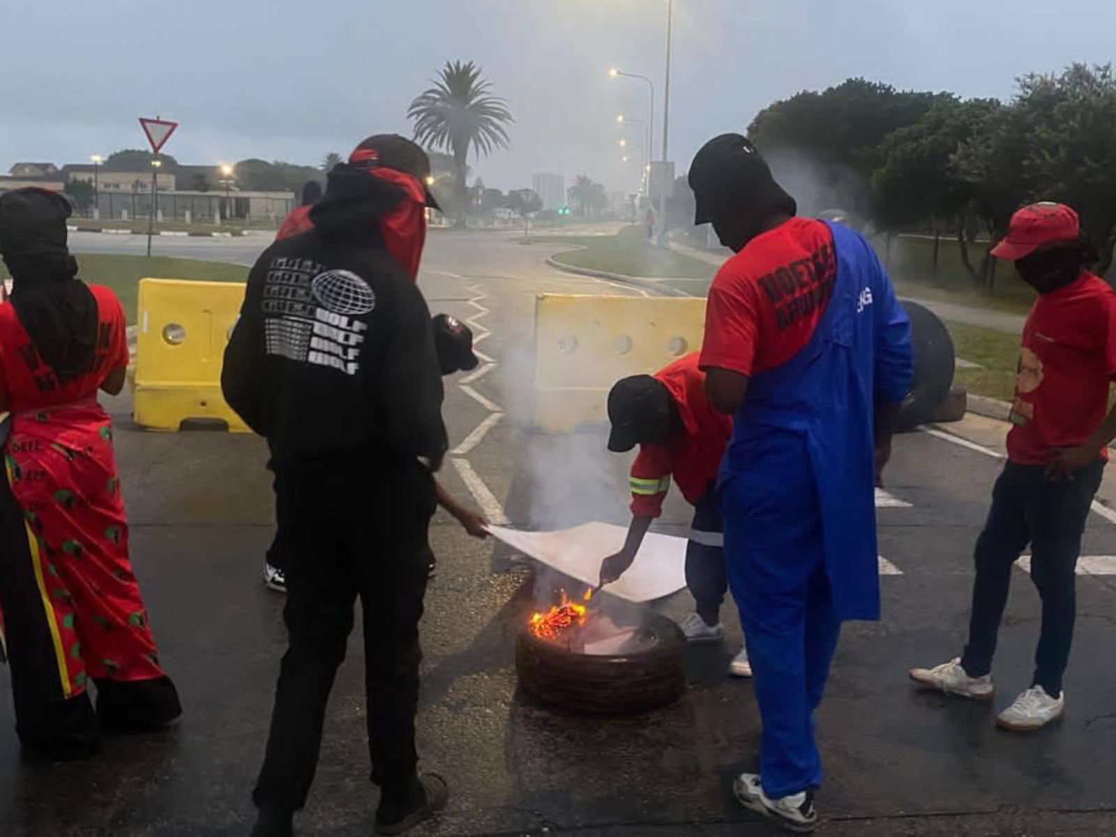 - About 30 protesters blocked North and South campus entrances with burning tyres and barricades, stopping cars and turning students and staff away.