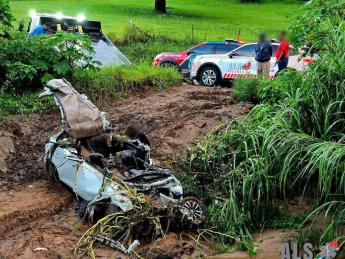 Pictured above: The washed away vehicle at the Gordon and Stapleton Road scene.